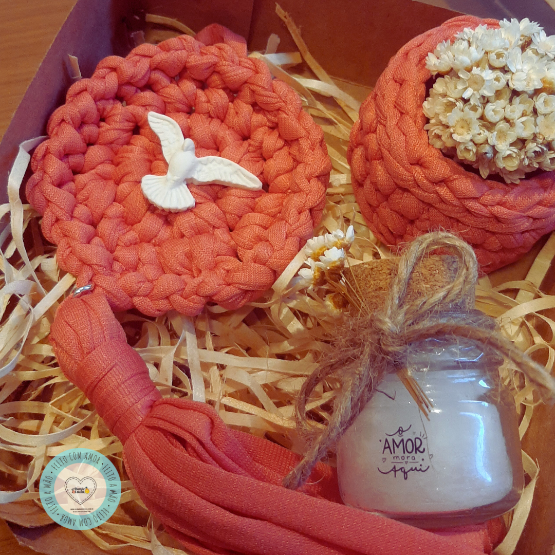 Kit Ilumine - caixa visor, com mandala divino, mini vela, cachepô com flores.