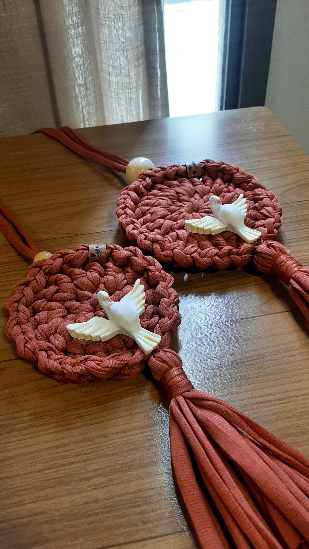 Mandalas feitas de crochê em fio de malha com aplique de pombinhas "Divinos". Lembranças personalizadas, podem ser usadas em datas comemorativas, batizado, primeira eucaristia, crisma, lembrança maternidade etc.. Embaladas individualmente em embalagem plástica.